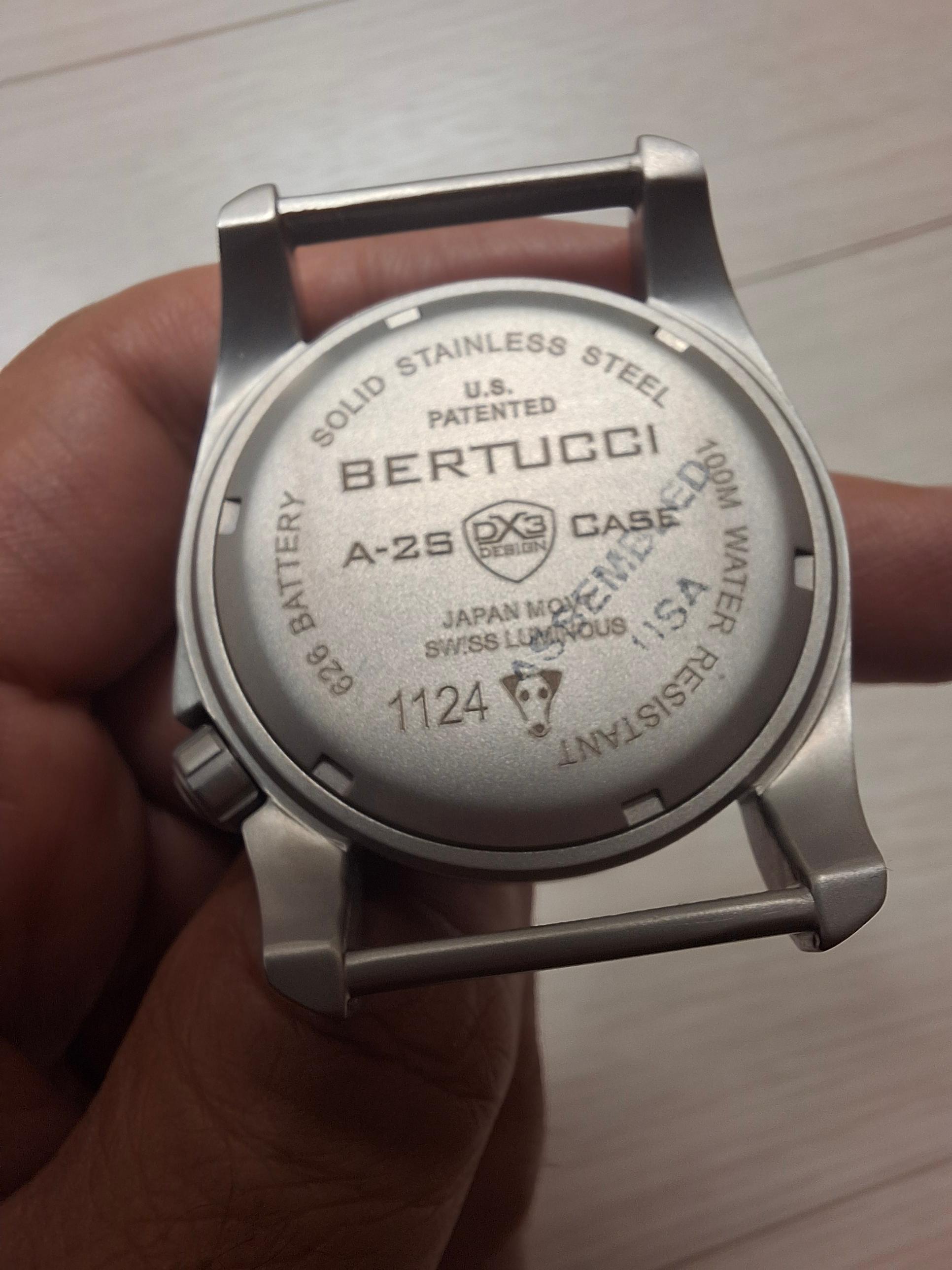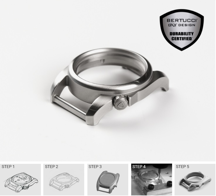 베르투치 시계의 가장 큰 특징은 특허받은 일체형 유니바디이다. 일반시계가 여러 부품을 조합해 시계 프레임을 만드는데 반해, 베르투치는 스트렙을 결착하는 스프링바까지 모두 일체형이다. 그래서 시계 스트렙을 나토스트렙만 체결할 수밖에 없다는 단점이 있지만 그만큼 강력한 내구성을 자랑한다.