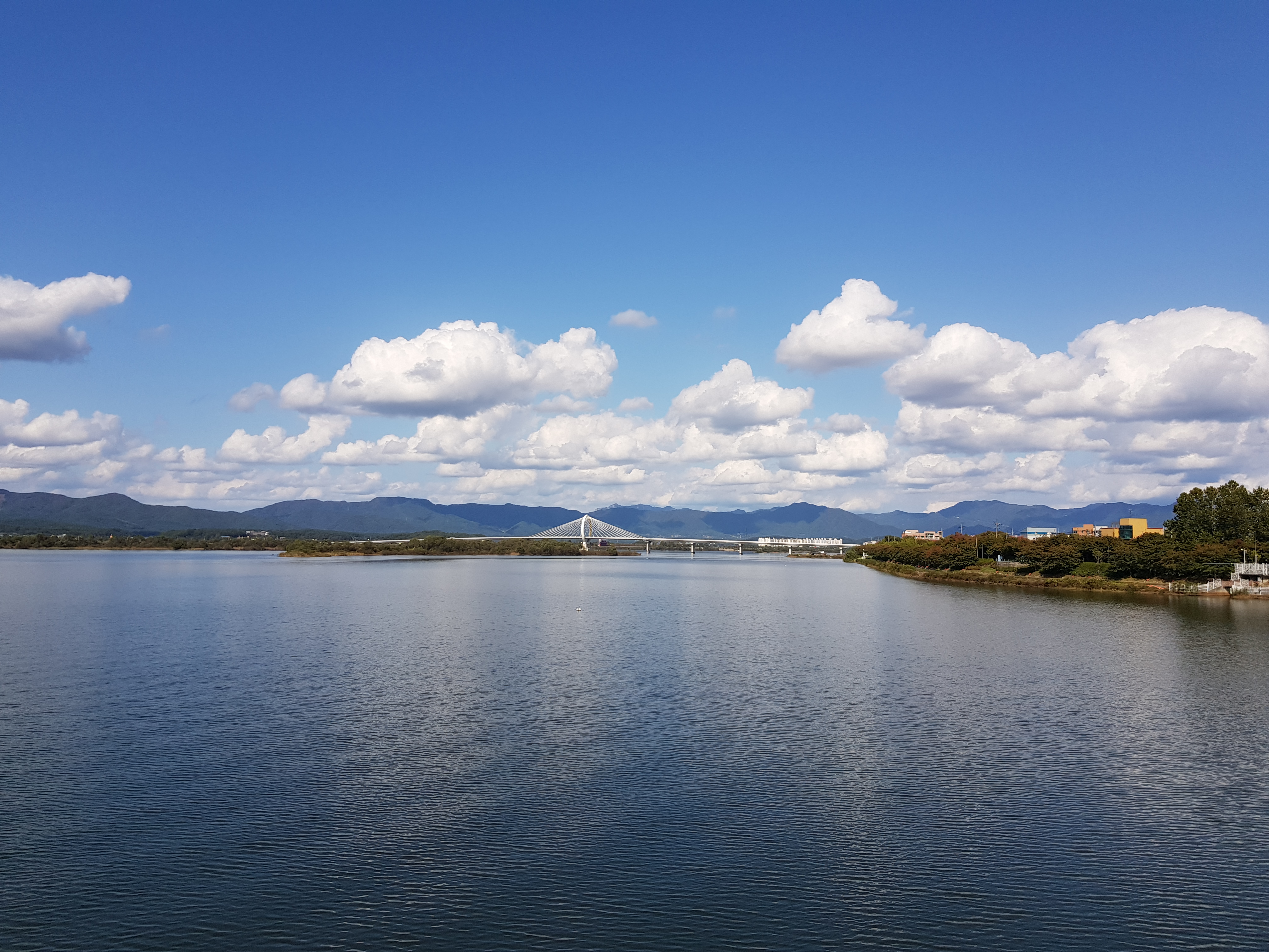 레고랜드를 건설 중인 중도로 건너가는 다리인 춘천대교가 보입니다. 구름이 너무 아름답네요.