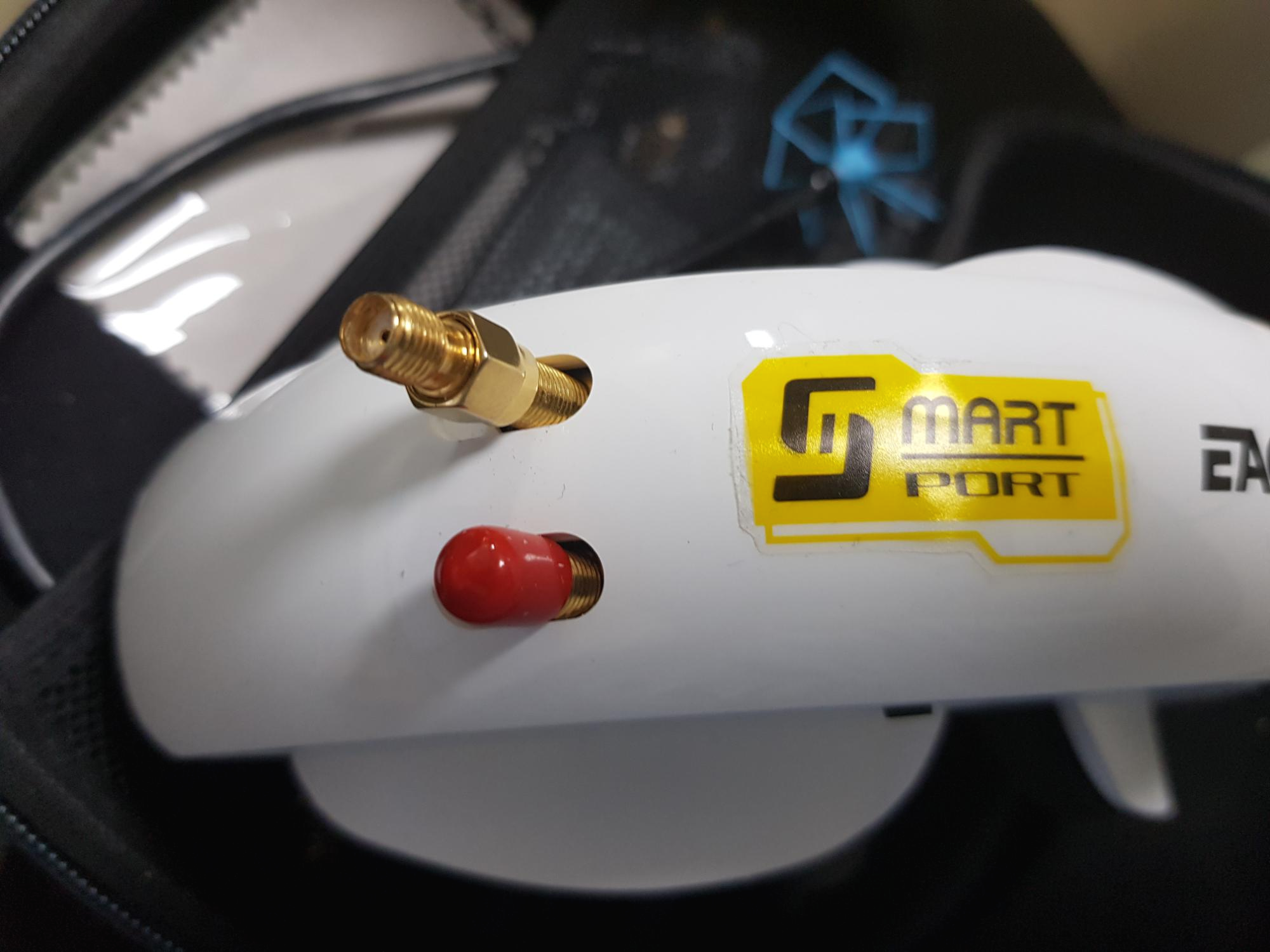 하지만 단점이 하나 있는데 안테나 연결단자가 밑의 그림에서 보시듯이 RP-SMA라는 것입니다. 국내 드론샵들에서는 생각 외로 RP-SMA단자에 맞는 안테나를 찾기가 어려운데요, 그래서 중간에 SMA로 변환해주는 단자를 장착해서 SMA단자용 안테나를 사용하고 있습니다.