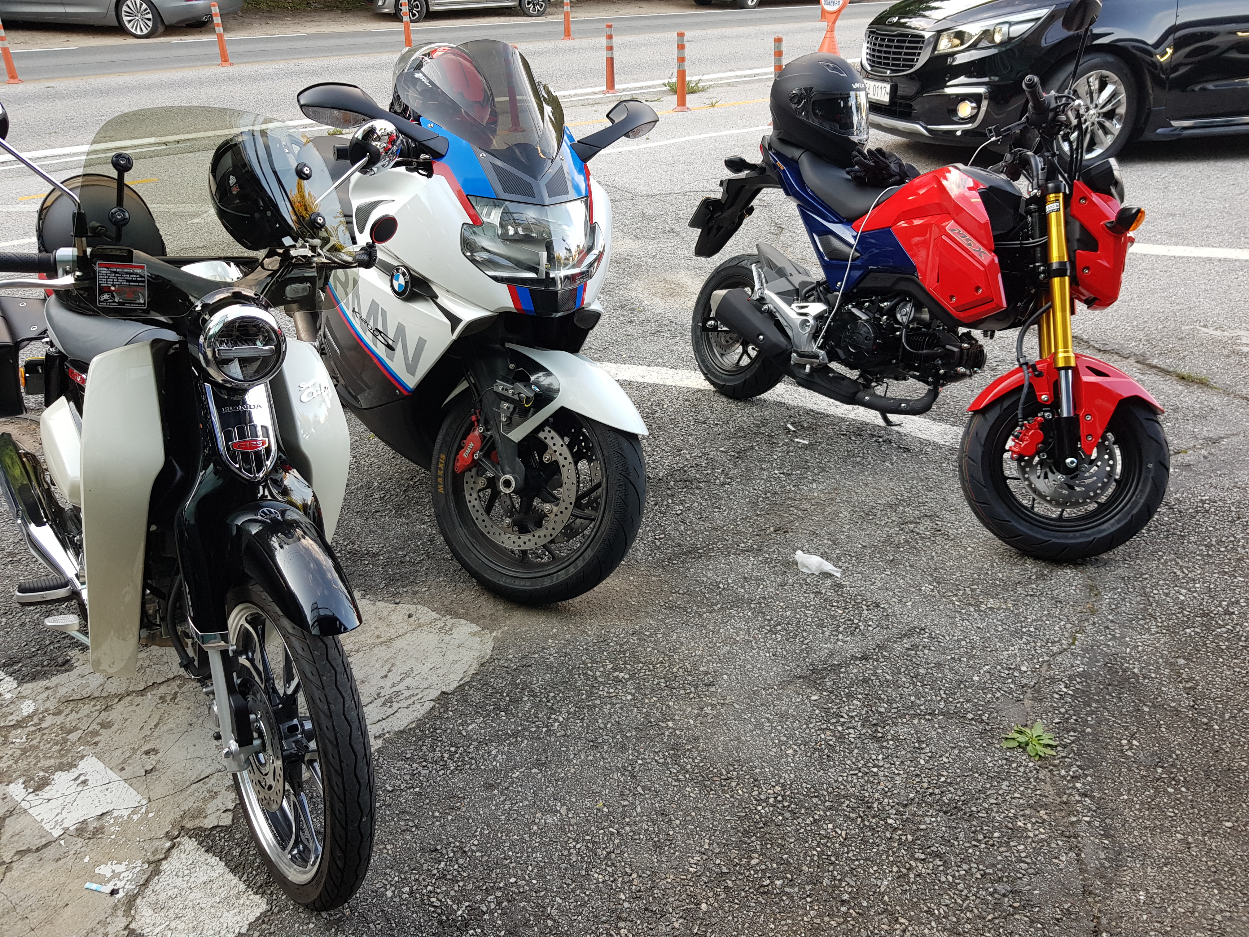 그나마 바이크를 타는 분들과 함께 다닐 때는 위협감을 잘 못느끼겠어서 재밌었는데 혼자 다닐 때는 생각보다 적응이 금방 되지 않았다. 특히 가장 적응이 안 되는 점 하나가 자동차처럼 후방 확인이 자유롭지 않다는 점. 자동차의 룸미러가 얼마나 편한 것인지를 깨닫게 되었다. 바이크도 물론 하려면 후방 확인을 할 수 있지만 자동차만큼 자유롭지는 않다. 그래서 뒤차가 나에게 얼마나 붙었는지가 바로바로 확인이 잘 되지 않는다는 점이 바린이인 나에게는 불안으로 다가왔다.