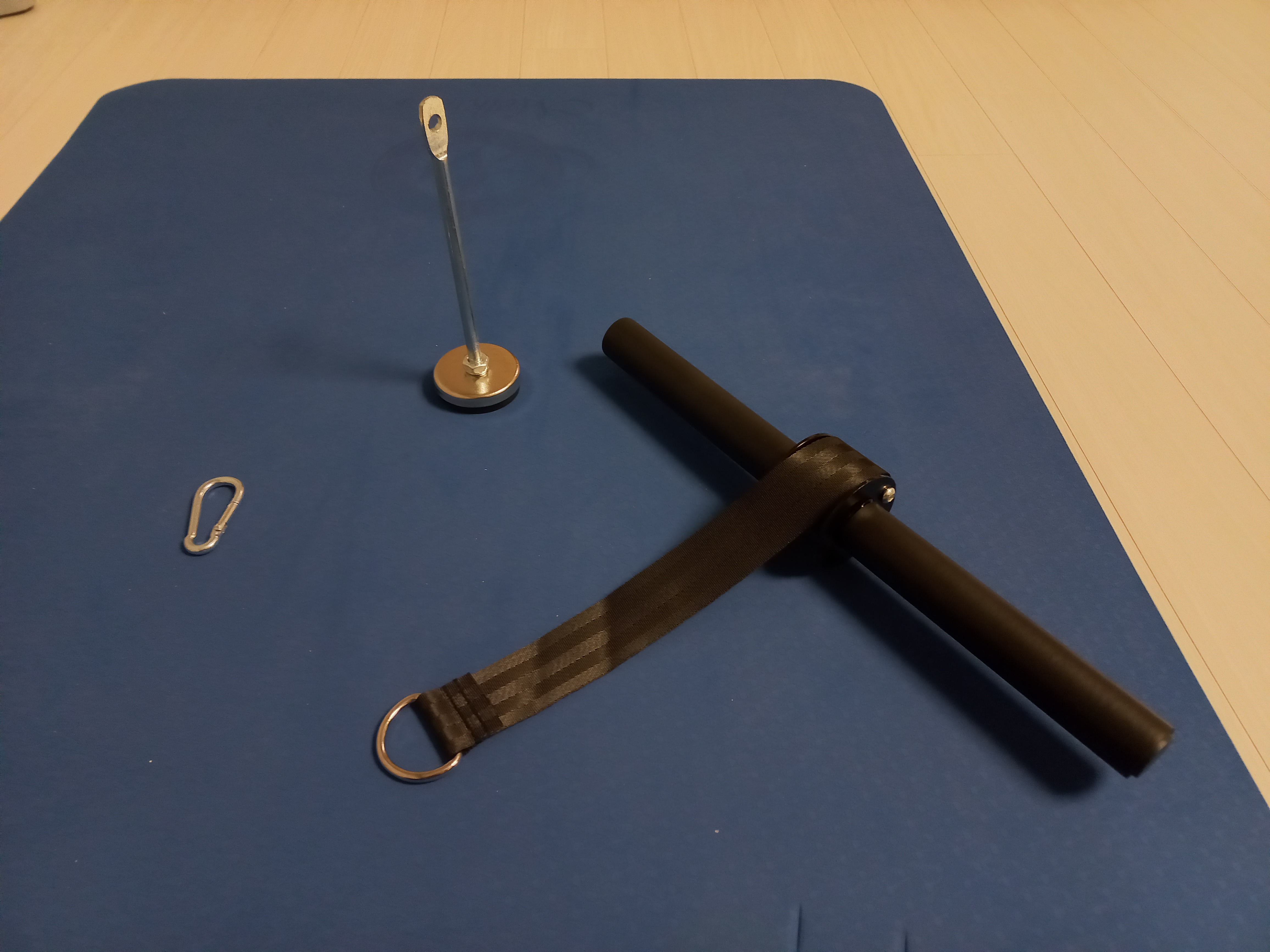 이렇게 원판을 끼우면 된다. 봉 길이가 충분하여 나중에 추가로 원판을 많이 끼우는 것도 가능하다.